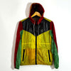 A Jaqueta Rasta - Feminina transforma velames reserva descartados em uma peça que vibra estilo para pessoas descoladas, com inspiração nas cores e espírito livre do rasta. Feita com trabalho artesanal que destaca o nylon do velame, cada unidade ganha realce exclusivo, utilizando 100% de reaproveitamento, forro leve, malha respirável e touca especial retrátil na gola para caimento diferenciado e praticidade. Confortável e genuína, em nylon especial vitalício, é ideal para o dia a dia. Dicas de cuidado: lavar separado, não passar, secar na sombra e manuseie com amor. Não indicada para salto de paraquedas. Viva a sustentabilidade! Do Brasil para o mundo.