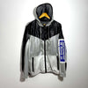 A Jaqueta de Velame Parachutes de France é uma peça exclusiva da Descola, criada a partir de velames reaproveitados. Seu design autêntico mistura o preto e o prata, com destaque para o detalhe estampado na manga: Parachutes de France SA.
